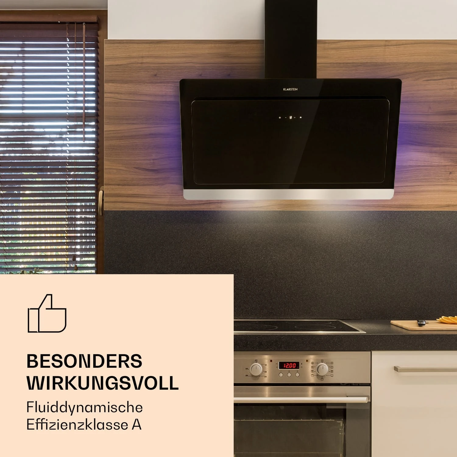 Jetzt kommt Glanz und Stimmung in die Küche – und ganz nebenbei beseitigen die Klarstein Aurora Eco Dunstabzugshauben auch Dampf und Essensgerüche. Mit bis zu 550 m³/h Abluftleistung in drei Stufen beseitigt die Aurora Eco unermüdlich Dampf und Gerüche aus der Küche. Besonderen Charme versprüht dabei nicht nur ihr stilvolles Äußeres aus gehärtetem Glas, sondern auch das zuschaltbare Ambientelicht in 9 wählbaren Farben. So herrscht immer die richtige Stimmung in der Küche. Für Topfgucker ist eine kraftvoll helle LED-Kochflächenbeleuchtung ebenfalls vorhanden.