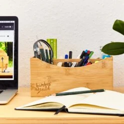 Schreibtischorganizer Tragegriff 4 Fächer 22,5x12x17cm Bambus