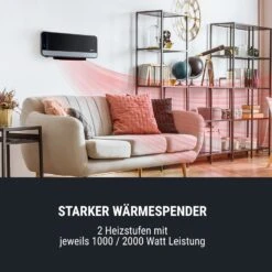 Wallkyrie Wandheizgerät 1000W/2000W 10 – 49 °C Thermostat Schwarz