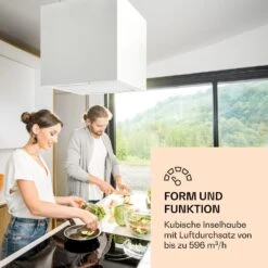 Kronleuchter L Inselabzugshaube 60cm Abluft: 590m³/h LED Touch Glas Weiß