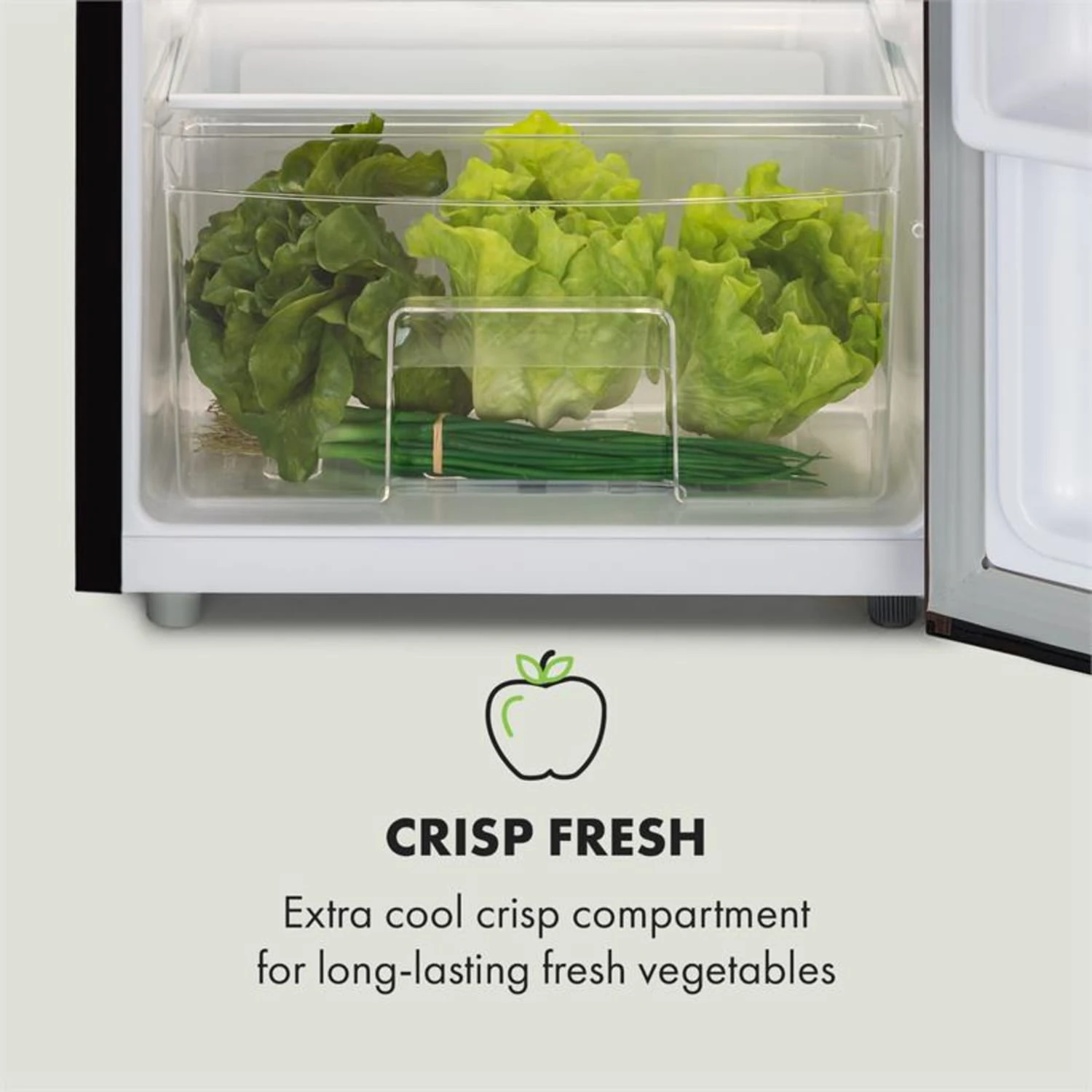 • Crisperfach: ca. 35,5 x 19 x 13,5 cm (BxHxT)