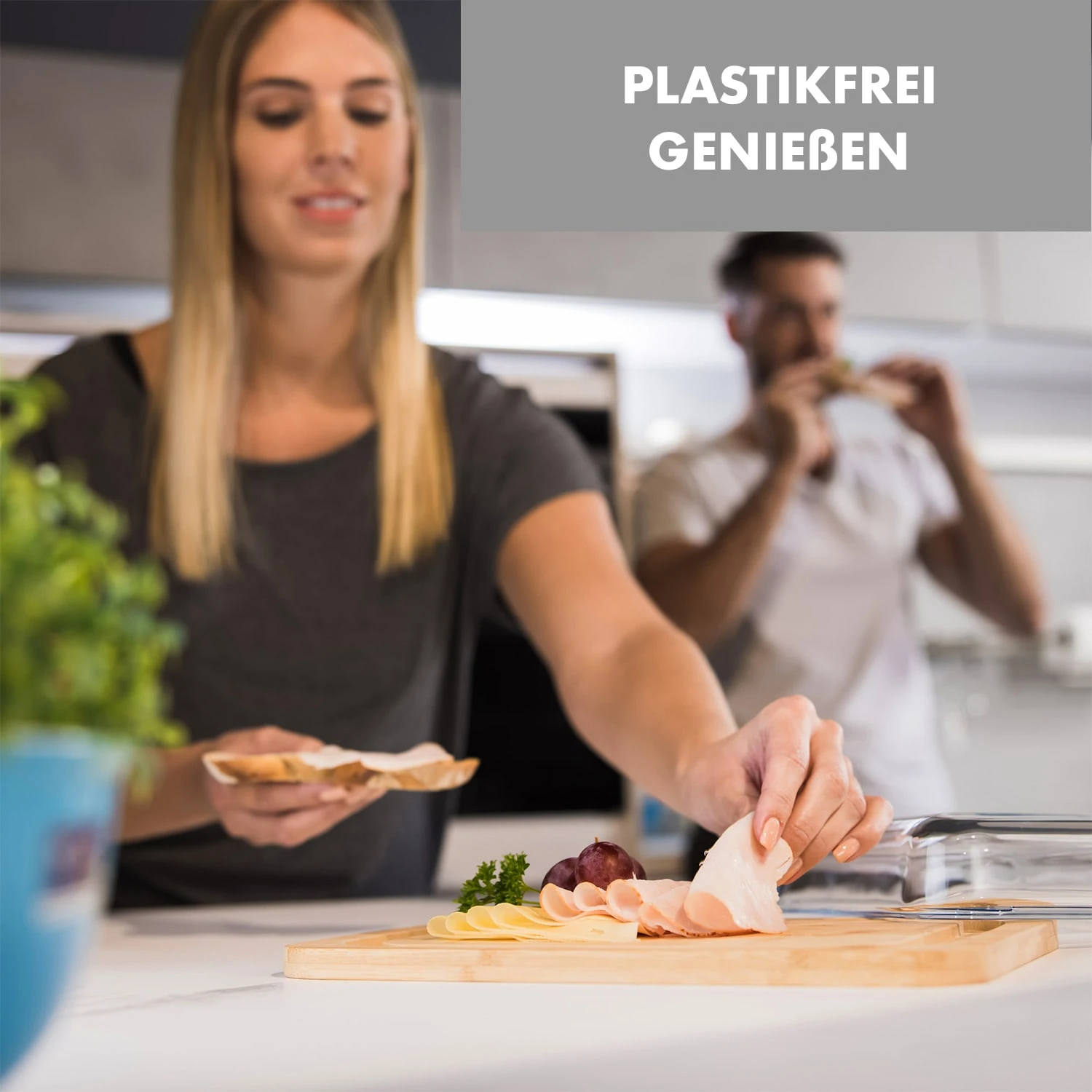Praktisch, komfortabel und natürlich: Die Glaswerk Hermatige Aufschnittbox von Klarstein ist eine formschöne Servierplatte mit Glasdeckel.