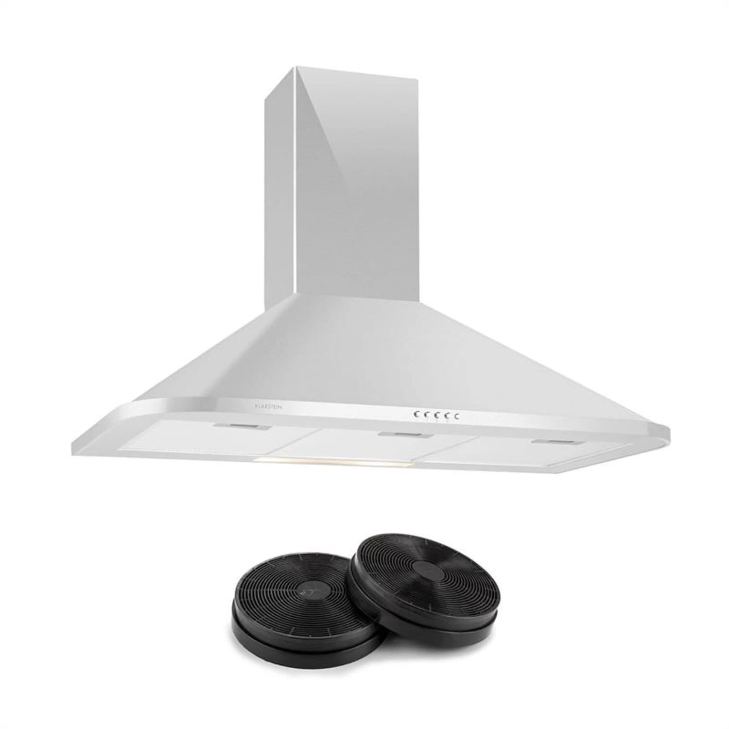 Das klassische Design und die edle Anmutung des Geräts machen das Gerät darüber hinaus zu einem formschönen Hingucker. Angebracht wird die 90 cm breite Klarstein Dunstabzugshaube über der Kochfläche: Eine entsprechende Wandhalterung ist im Lieferumfang enthalten.