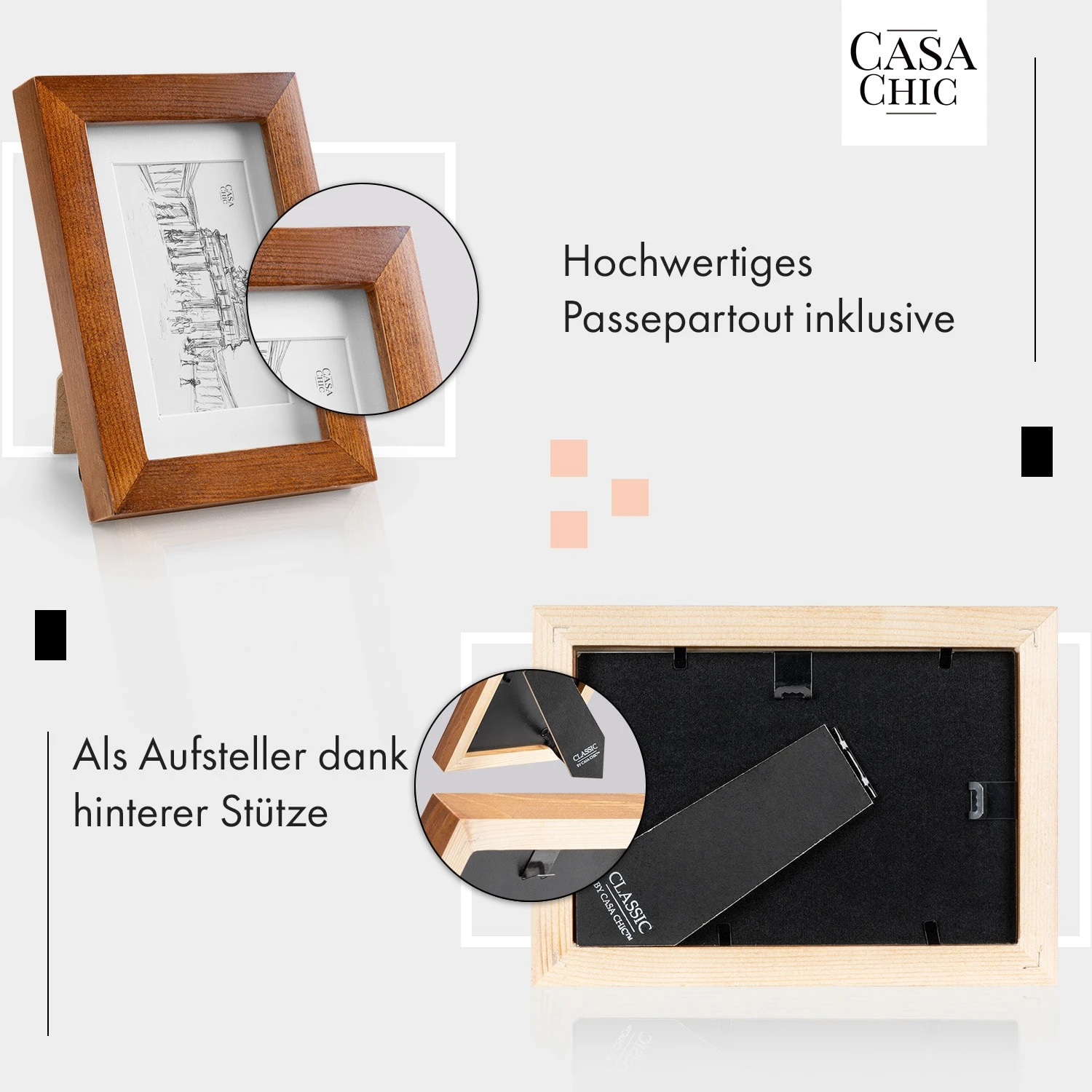 Setze mit den Kenton Bilderrahmen von Casa Chic by blumfeldt deine Lieblingsfotos und Bilder gekonnt in Szene. Die hochwertigen Echtholz-Rahmen veredeln durch ihre schlichte Eleganz deine Zimmerwände, Sideboards oder Regale. Im Hoch- oder Querformat wählst du dank des mitgelieferten Passepartouts den passenden Bildausschnitt. Hinter seiner Echtglasscheibe sind deine Kunstwerke vor Staub und Schmutz bestens geschützt.