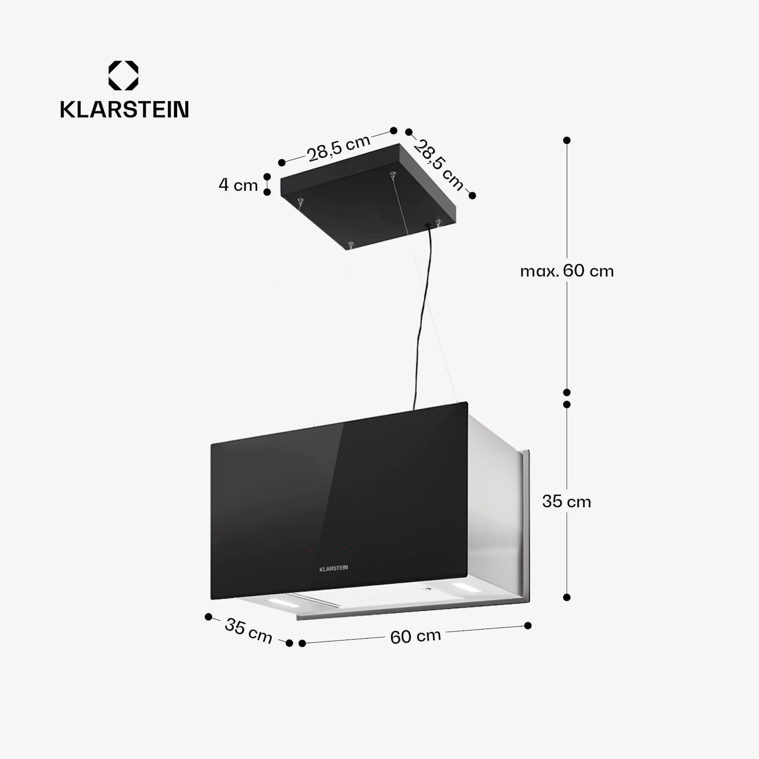 - Höhe der Abhängung einstellbar, max. 60 cm