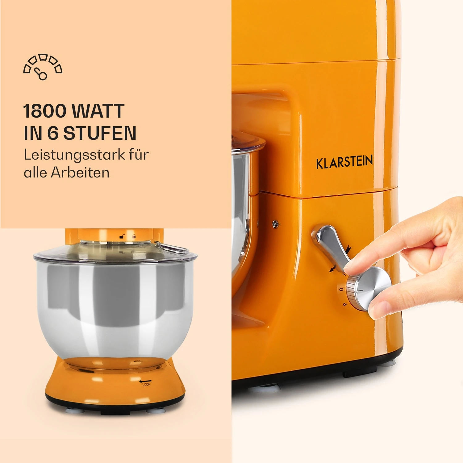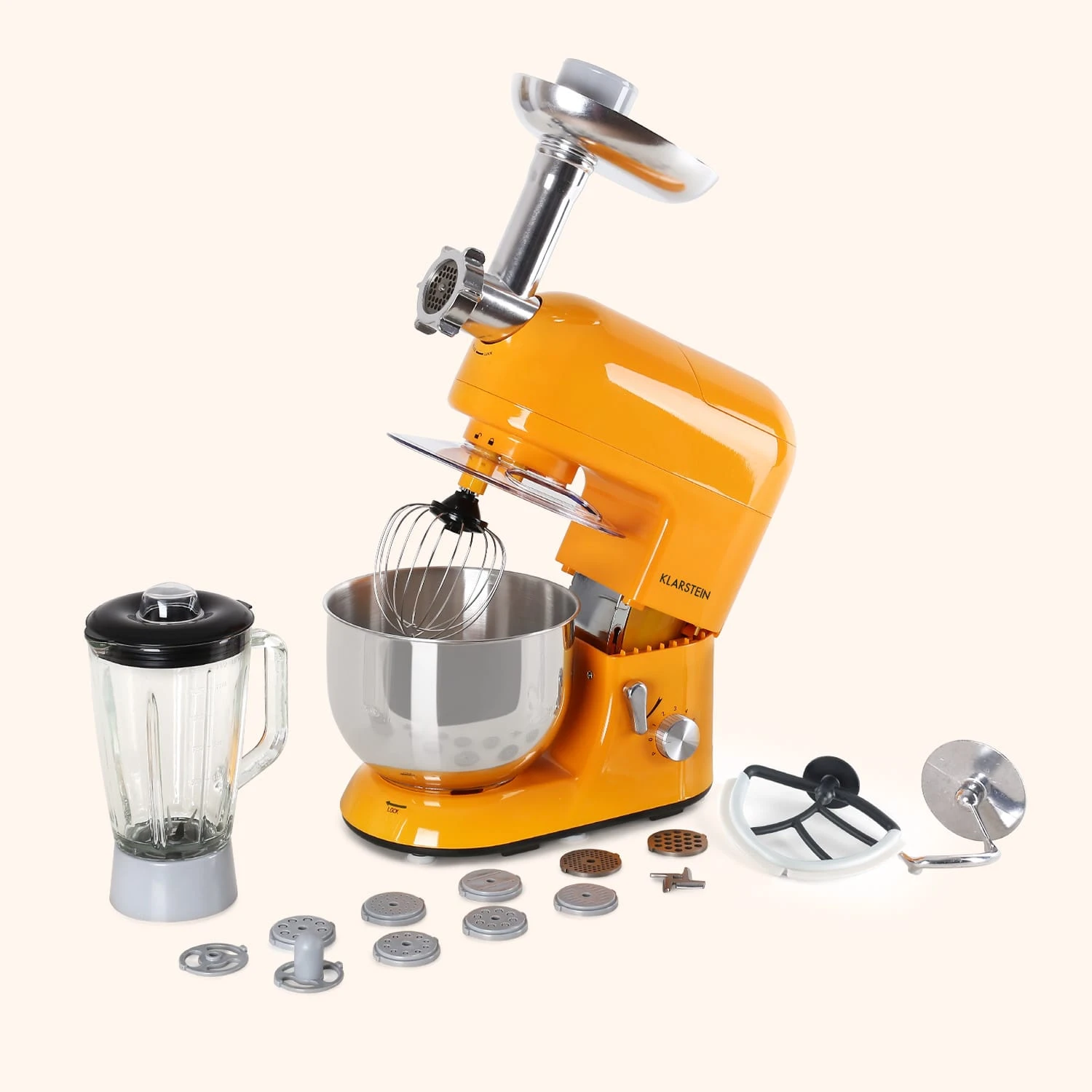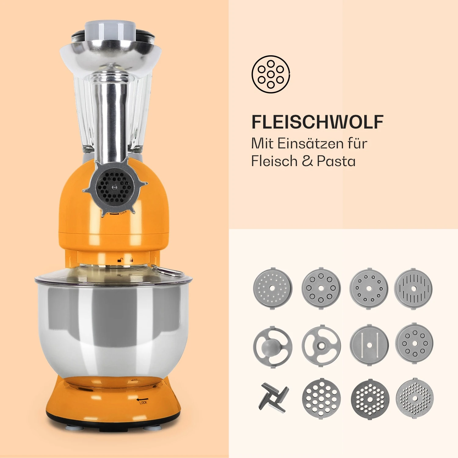 Die eine für alles. Die Klarstein Lucia Küchenmaschine ist das stilvolle Allround-Wunder für deine Küche. Hochgradig praktisch vereint sie Rührmaschine, Standmixer und Fleischwolf in einem Gerät. Mit 2000 Watt Leistung in 6 Stufen, planetarischem Rührsystem und 5,2-Liter-Edelstahlschüssel schafft sie alle Herausforderungen der modernen Rührkunst. Frische Smothies und leckere Shakes kreierst du im 1,5-Liter-Mixeraufsatz. Und für Freunde von frischem Hack oder Pasta ist der Fleischwolf-Aufsatz aus Edelstahl die perfekte Ergänzung. Kraftvoll ist auch das farbenfrohe Design deiner neuen Lucia. Damit ist sie auch nach dem Einsatz der Star in deiner Küche!