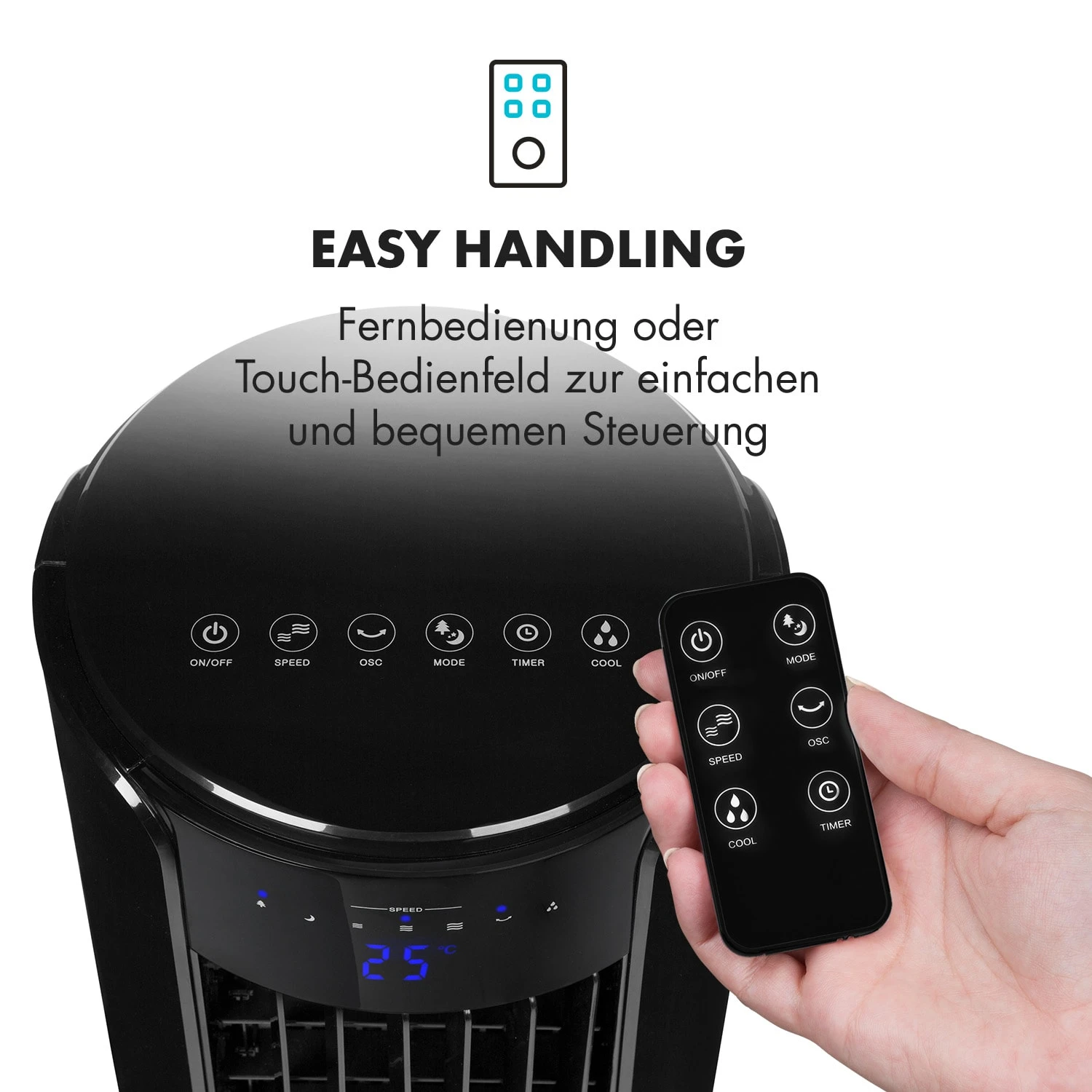 - Ventilator, Luftkühler, Luftbefeuchter und Nachtmodusgerät in einem